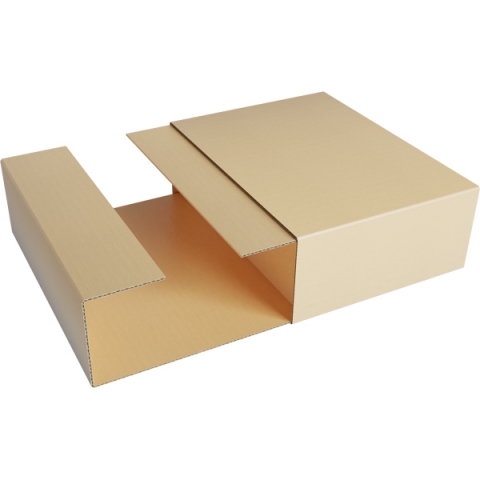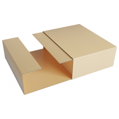 Коробка пенального типа представлена обечайкой со склейкой и прокладкой с биговками. Модель отличается простой конструкцией, которая легко собирается из двух гофрокартонных заготовок. Из одного листа склеивается прямоугольная рама. Другой элемент загибается четыре раза для формирования особой вставки, которая интегрируется в единую конструкцию. Модификация востребована для складирования и реализации товаров массового потребления небольших размеров.
