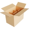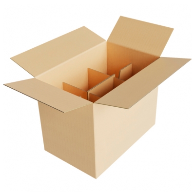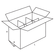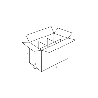 0207 — Коробка четырехклапанная с тремя внутренними перегородками Долговечная и надежная модель, основание и крышка которой изготавливаются из четырех клапанов одной высоты, расположенных встык друг с другом. Внутренне пространство коробки заполняется специальной решеткой для упаковки хрупких предметов. Тара предназначается для хранения и перевозки стеклянных бутылок. Особенности модели Конструкция поставляется в сложенном и склеенном виде. Модель собирается непосредственно перед применением. Сборка занимает несколько секунд. Коробка изготавливается по специальным трафаретам, после чего она скрепляется посредством клея или липкой ленты, или сшивается путем использования металлических скоб, что существенно повышает прочность изделия.