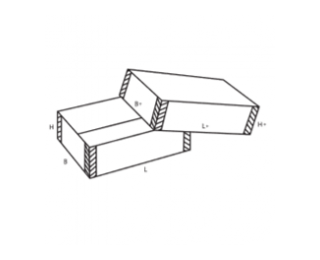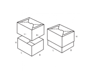 Телескопическая коробка с двумя крышками и обечайкой. Модель очень похожа на 0310, различия присутствуют только в способе скрепления деталей. Упаковка состоит из трех элементов: Вертикальная обечайка. Включает 4 основные стенки, сгибаемые по биговкам, и один небольшой отрезок, который приклеивается или крепится скобками внахлест. Крышка и дно конструкции. Процесс сборки проходит без клея и скобок благодаря специальной конструкции углов — они легко соединяются и образуют надежную конструкцию. Высота полученных деталей частично перекрывает обечайку, она может быть одинаковой или различной — по заказу. Упаковка может использоваться для перевозки и хранения любых товаров.
