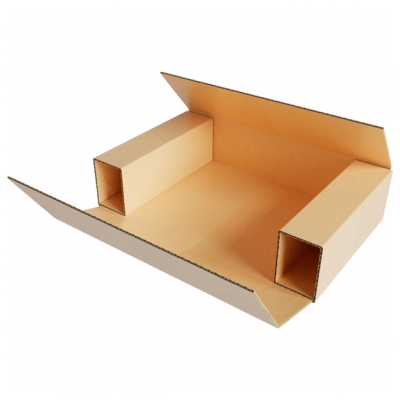 Коробка оберточного типа с усиленными внутренними клапанами широко применяется при доставке хрупких предметов, которые требуют бережного обращения. Модель изготавливается из гофрокартонного листа, вырезанного в крестообразной форме. Заготовка загибается по двенадцати линиям. Внутренние клапаны имеют дополнительный загиб краев, что позволяет создать эффективную амортизацию с двух сторон ящика. Упаковка легко раскрывается с помощью двух верхних клапанов.
