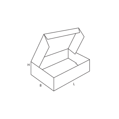 Ящик складного типа отличается наличием откидного верха и усиленных торцевых стенок. Изделие изготавливается из картонной заготовки. Лист нарезается на специальном оборудовании по стандартному шаблону, а затем загибается по проектным линиям. Края с торца вдеваются язычками в специальные прорези и образуют двойные стенки, что повышает прочность модели. Содержимое упаковки надежно защищается от механических воздействий благодаря трехслойному материалу.