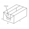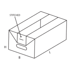 Сшитый короб в конфигурации лотка широко востребован в розничной торговле. Отличительной особенностью является наличие специальных ручек в виде сквозных отверстий на торцевых гранях. Картонная заготовка вырезается по типовому шаблону, а затем загибается по проектным меткам. Особая технология сгибов позволяет получить прочную конструкцию с усиленными углами. Модификация отличается высокой стойкостью перед механическими воздействиями и способностью выдерживать высокие весовые нагрузки.