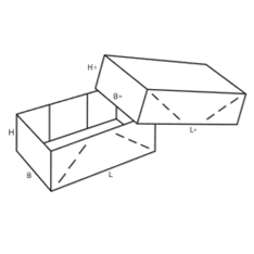 Телескопическая коробка с равными по величине каркасом и крышкой, которые могут использоваться отдельно, как две одинаковые емкости. Высота и длина верхней крышки на 100% перекрывает корпус, тем самым увеличивая прочность всей упаковочной конструкции. Как и в модели 0303 здесь есть перфорация по длине, единственное отличие — склейка происходит по длинной, а не по короткой стороне. Днище и верхняя часть цельные, в отличие от модификации 02хх. Упаковка используется для хранения, продажи и перевозки товаров с небольшой высотой и увеличенными габаритами, например, матрацы, плазменные панели, двери и т.д.
